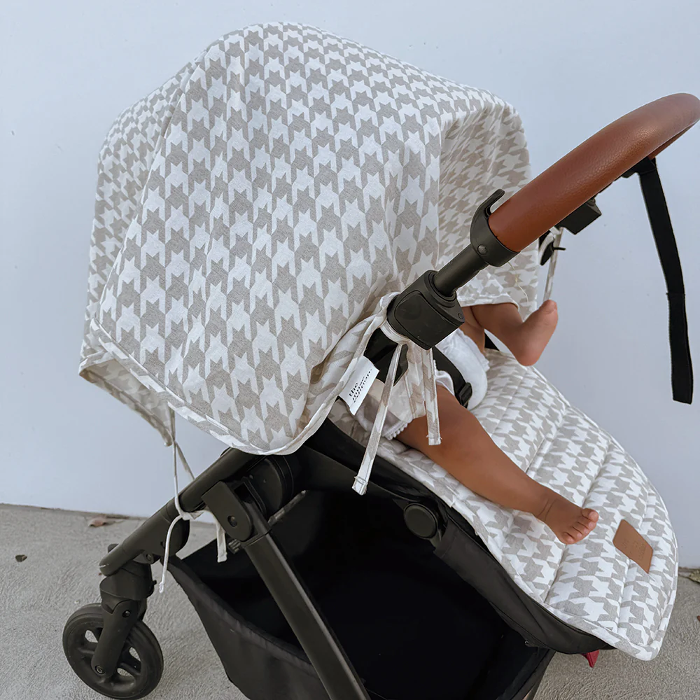It also transforms into a light pram sunshade, simply drape it loosely over the pram canopy and secure with the side ties for shaded, well-ventilated comfort (no flimsy plastic pram clips). Linen ensures optimal airflow and the generous size offers flexible coverage. Learn how to use your linen pram blanket safely in our guide here.