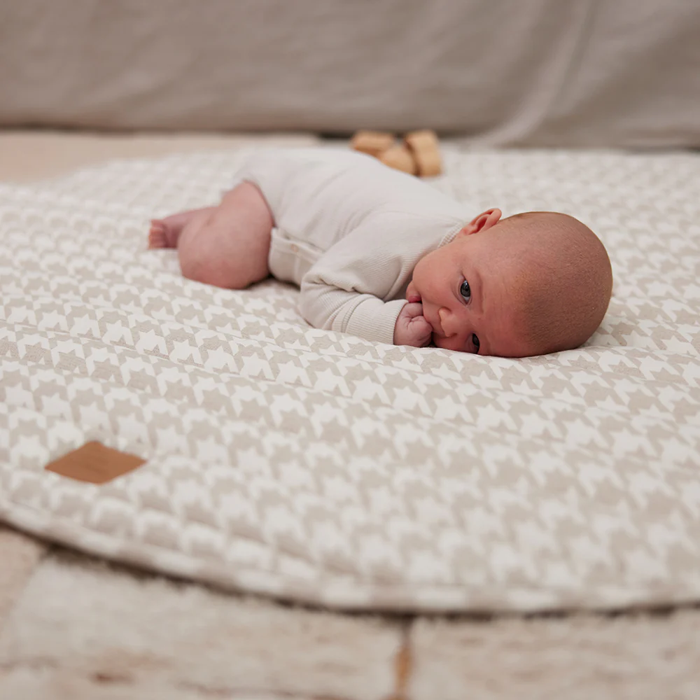 Now, we're thrilled to introduce our range of linen play mats in our exclusive Houndstooth capsule collection, featuring subtle neutral tones. Think premium fabrics, soft curves, clean lines, and warm, muted hues.