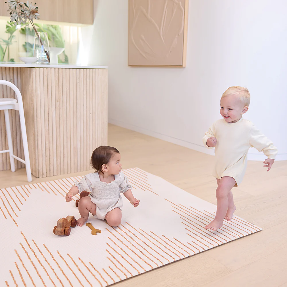 Measuring a generous 200cm x 140cm, our spacious double-sided padded play mats are crafted to complement your home's interior and suitable for the entire family to enjoy. They're not just safe for newborns – they’re certified for them. You can view our independent safety test reports here.