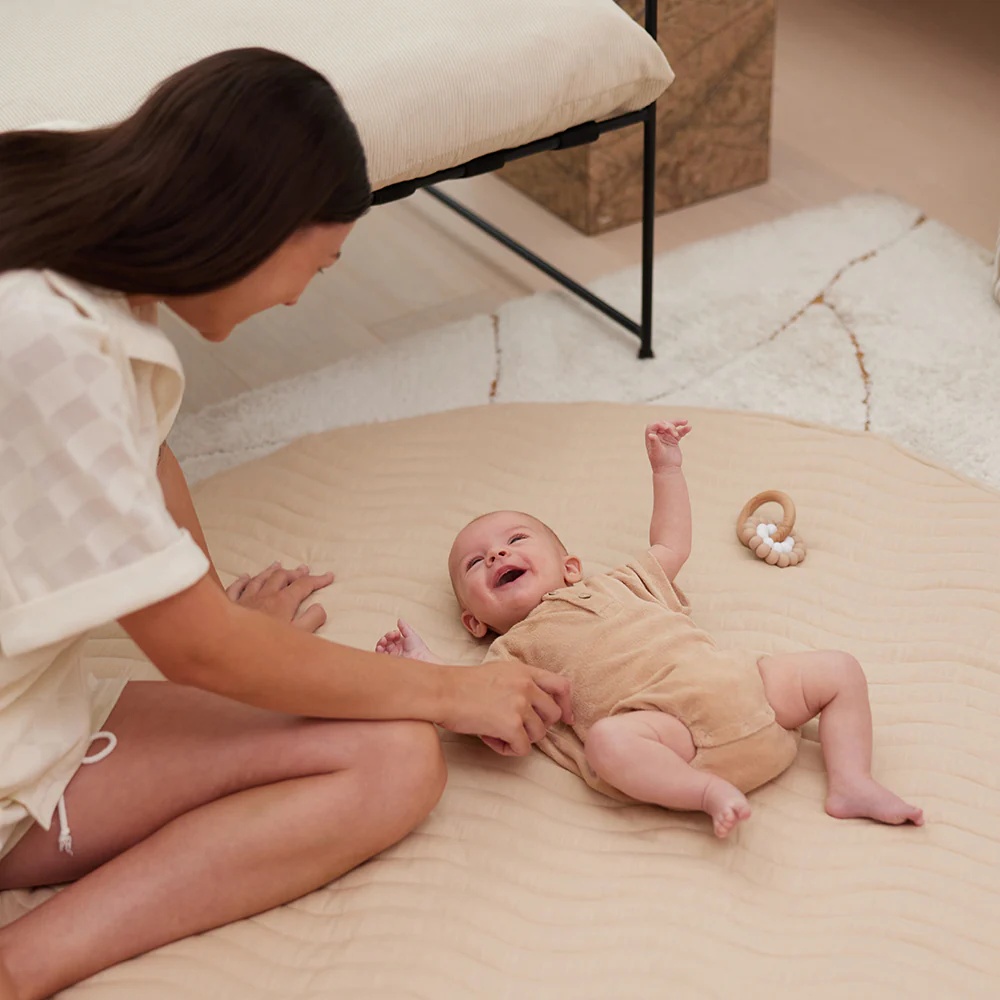 Now you can seamlessly merge your personal style and your parenting journey with our range of linen play mats. Think premium fabrics, soft curves, clean lines and warm, muted hues.