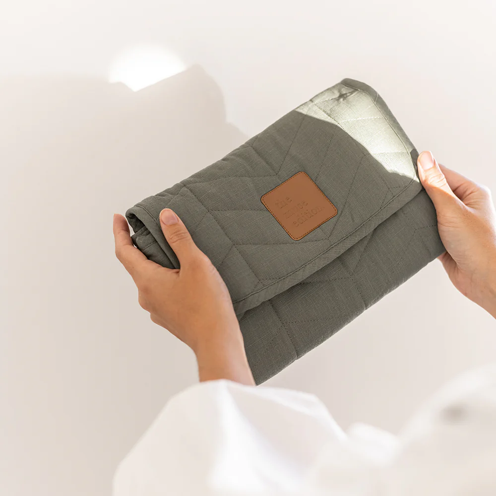 The Muse Edition baby change mats combine premium linen-blend fabric with a soft, wipe-clean vegan leather lining, delivering the perfect mix of style and function and making them a must-have accessory for all parents.